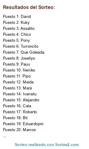 Lista de participantes: Yervis, Pipo, Que Goleada, Joseliyo, Meida, Neniko, Alejandro, Turroncito, Mara, Kuky, Ivansitu, Marcos, Kagaxin, David, Chico, Bit, Assalito, Coke, Sanchez, Pony, Pauu, Eduardopro, Roberto, Cata.
