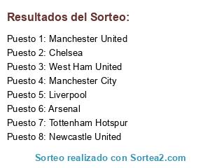 Lista de participantes: Arsenal, Newcastle United, Chelsea, Manchester United, Liverpool, West Ham United, Manchester City, Tottenham Hotspur.