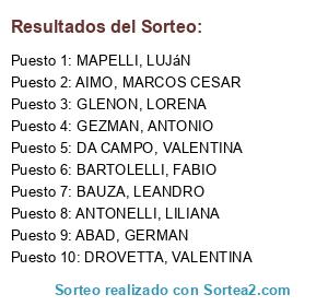 Lista de participantes: HENESTROZA, SILVINA, PASQUALI, CAROLINA, SAN MARTINO, CAMILA, ABAD, GERMAN, ACEVEDO, LUIS , ACOSTA, SANTIAGO, ACUñA, MAGALI, ACUñA, MARTIN, AGRANO, CYNTHIA, AGUILERA, ISAIAS, AGUSTIN, ACEVEDO, AIMO, MARCOS CESAR, ALBERDI, LEANDRO, ALBORNOZ , SABRINA , ALDANA, ANA, ALFONSO, DIEGO, ALMADA, ALICIA, ALMADA, CLAUDIO, ALMARAZ, CHRISTIAN, ALODI, PABLO, ALZUGARAY, JAVIER, ALZUGARAY, DANIEL, ANABELLA, BONINI, AQUINO, LUCAS, ARAMBURU, JOSE LUIS, ARENAS, FACUNDO, ASCOLANI, SUSANA, ASEFF, LUIS MANUEL , AVILA, FRANSISCO , BABAYA, MARIA FLORENCIA, BAGNERA, YANINA, BAIER, LEONELA, BALáN, MARíA CHIARA, BANDETTINI, DANISA VERONICA, BARBIERI, KARINA, BARBOZA, ALEJANDRO , BARCELó, PABLO, BARTOLELLI, FABIO, BATTAGLIA, JUAN ALBERTO, BAUZA, LEANDRO, BAZAN, MARTIN JAVIER, BAZZANA, GUIDO, BECHARA BALADI, NESTOR, BELLONI, DANIEL JOSÉ, BERNAL, GONZALO, BERTOLOTTI, FACUNDO, BERTRAM, JUANCA, BESDNIAK, ERICA, BISSUTTI, JOEL, BONO, JORGE, BORDON, PATRICIA, BORETTI, AUGUSTO, BORRAJO, GONZALO, BRAGAGNINI, JEREMIAS JORGE, BRAVIN, CARLOS, BRAVO, NATALIA, BRAVO, LISANDRO, BRAVO, KARINA, BRAVO, ELISA , BRESSAN, NOELIA VANESA, BULLA, MARIA EUGENIA, BULLUTTI, NATALIA ISABEL, BUNDZINSKAS, MAURO IVáN, CABRAL, MARIA FERNANDA, CAINELLI, SEBASTIAN, CALOGEROPULOS, JULIA, CALVET, DAMIAN, CALVO, SANDRA NOEMI, CALZADA, PRISCILA, CAMPORA, FRANCO, CAMUSSONI, ALBANO, CANTATORE, MARA, CARABALLO, EMILIANO , CARBALLO, MARIO, CARDOZO, ESTEBAN, CARDOZO, PATRICIA, CARIAGA, DANIEL M CARIAGA, CARRANZA, IVAN, CARUSO, PATRICIA, CASAS, LUCILA, CASTANO, DAIANA, CASTELLANO, PABLO, CASTILLO, FERNANDO, CASTRO, RAMIRO, CECILIA, BERTA, CERUTTI, ANABEL, CHAMORRO, NORMA, CHIAPPELLA, FLAVIA, CHIODIN, JAVIER, CHIODIN, ADRIAN, CICARELLI, COLIN IVAN, CICOLINI, MARCELO, CIFUENTES, RICARDO, CLOHESEY, ARACELI, COLAUTTI, RAFAEL, COLMUSSONI, GEORGINA, CORRA, LEONEL, CORTES, ADRIANA MAIVA, CORTES, EGLANTINE ELISA, COSENTINO, MARIO, COSTEN, GUSTAVO, CRISPIN, VANESA, CUCIT, GUSTAVO LUIS, CUELLO, NESTOR FABIAN, CUESTA, JORGE, DA CAMPO, ESTEFANíA, DA SILVA, SONIA, DABOVE, DANIEL , DAMIANI, JULIAN, DE GUIO, OSVALDO, DEL CANTO, JOEL FERNANDO, DELGADO, LEONARDO, DELLA BIANCA, DIEGO DAMIAN, DEMARCHI, PABLO EXEQUIEL, DI BIAGGIO, BIANCA, DI BIAGGIO, NICOLAS, DI FRANCO, ANGEL, DI LUCH, GONZALO, DIAZ, ELISABET, DIAZ, PABLO, DIAZ, CRISTIAN, DICIEMBRE, DANIEL OMAR, DIDIER, DAVID, DIEZ, DANIEL, DOMINA, FEDERICO ANDRES, DOMINGUEZ, ANDREA, DOMINGUEZ, FABIAN ALBERTO, DOMINIO, CINTIA, ECHENIQUE, LEANDRO, ESCALANTE , HUGO HERNAN, ESTEPA, WILFREDO, FANTONI, FERNANDO, FARIAS, HERNAN, FASANO, GASTON, FELCARO, ALEJANDRO, FERNANDEZ, KARINA, FERNáNDEZ, VALERIA, FERNANDEZ, GUSTAVO, FERNANDEZ, JOSE, FERNANDEZ CHAPARRO, PATRICIA GABRIELA, FERNANDO, VENIER, FERRARI, EZEQUIEL, FERRARI, CORINA LIZA, FERRARI, GERARDO, FERREYRA, NILDA, FERREYRA, CAROLINA, FIORITO, GUILLERMO, FONTANINI, LEONEL, FRANCISKOVIC, JORGE BRANKO, FRANCISKOVIC, NATALIA GRETEL, FRONTERA, BELKI ALEJANDRA, GALIANO , ALAN NICOLAS , GALUCCI, ADRIAN, GARCIA, VALERIA, GAUNA, CRIATIAN, GHEZZI, ANABEL , GIACHETTI, LUCIANO, GIAGANTE, CARLA MARíA, GIL, SILVANA, GNOATO, JUAN MANUEL, GODOY, MARTIN ARIEL, GODOY, CLAUDIA, GODOY, MAURICIO, GODOY, JESICA , GOMEZ, WALTER, GOMEZ, MARIO, GOMEZ, MONICA, GOMEZ, SALVADOR, GOMEZ, CARINA, GONDO, EMANUEL, GONZALEZ, MERCEDES ISABEL, GONZALEZ, DAVID, GONZALEZ, CARLOS, GOROSITO, FRANCISCO, GRAGLIA, MICAELA NOEMI, GRIMI, FRANCISCO, GRISOLIAíU, PATRICIO LEONARDO, GRUNING, MAXIMILIANO, GRUNING BAYOT, MAURO , GUERRINA, MAXIMILIANO, GULLINI, SANTIAGO, HERLEIN, SATHYA, HERRERA, ROBERTO , IBANEZ, GICELA, IBAñEZ , HUGO, IBARRA, MARTA, IMPROTA, MARILIN, JIMENES, JIMENA, JULIO, YANINA, LA SPINA, JULIAN, LALUK, ERICA, LARRIPA, MARCELO, LAURICELLIA, ANDRES, LEGUIZAMON, EDUARDO, LEGUIZAMON, LEONARDO, LEGUIZAMON, IRMA, LEIVA, RUTH, LEONARD RUANO, DAVID, LEONEL NICOLAS, DUARTE, LESCANO, SELENE, LEYS, FEDERICO, LóPEZ, MARCOS, LOPEZ, MIRIAM, LUCERO, EMILIANO, LUNA, MA. FLORENCIA, MACIEYKO, PABLO, MACK, ELIZABETH, MAGUNA, SONIA, MAIDANA, NELSON JOSE, MAIDANA, EMILIANO, MAIDANA , EZEQUIEL, MAIDANA, EMANUEL, MANCHUQUI, ELVIRA, MANCILLA, MARIA, MANSILLA, HUGO, MANSILLA, SILVINA, MANZANEL, MARIA ANGELA , MARCORE, MARIO, MARCUZZI, PABLO, MARIA JOSE, RODRIGUEZ, MARIEL, EGUSQUIZA, MARTINEZ, FATIMA MARIEL, MARTINEZ, DIANA, MARTINEZ, CAROLINA, MARTINEZ, CLARISA BEATRIZ, MASCARELLA, SOFIA, MASINI , PABLO CRISTIAN, MASTRANDREA, MARIA MAGDALENA, MATTOSSO, ROMINA AYELEN, MAYANS, NESTOR , MECA, CLAUDIA, MEDINA, CINTIA, MEGGIOLARO, VERóNICA , MENDOZA, MABEL, MENICHELLI, LUCAS, MENICHELLI, JEREMIAS, MEROI, LISANDRO, MEROI, CAROLINA, MILANO, JULIAN, MILETTI, GIANFRANCO, MIRAGLIO, FABIAN, MIRALLES, MILTON, MIRANDA, JAQUELINA, MIRANDA, MARIANGELES, MIRIAM, ZAMBONI, MOLINA, PABLO SEBASTIAN, MOLINA, CECILIA, MONGELO, ITATI MERCEDES, MONTERO, LIONEL LUCAS, MONTOLIO, MARIA PAULA, MORALES , ROMINA NATALIA , MOREIRA, JOSE, MORENO, ALBERTO MARCELO, MORENO, CARLA, MOREYRA, IRIS, MORIN, ESTEBAN, MUñOZ, JOSE, MURRO, JOSE LUIS, NAUNA, CARLOS DANIEL , NAVARRO, TAMARA , OJEDA, ELIANA, OLIVERA LAZO, WILBER MATIAS, OLMOS, MICAELA , OTERO, CORINA , OZAN, GUSTAVO, PADOVANI, PAULINA, PAEZ, JOSE ALBERTO, PAEZ, KARINA, PAGIOLA, FACUNDO, PAGIOLA, MARILINA, PALMA, FLORENCIA , PALMA, LOURDES, PASTTORUTTI, GABRIELA, PAYER, HORACIO DANIEL, PAZZI, MARCOS, PEDEMONTE, SABRINA, PEDEMONTE, EUGENIA, PEDERNERA, MIRIAM ELENA, PELLEGRINI, MARCELO, PERALTA, CLAUDIO, PEREYRA, FABIAN, PEREZ, CARINA, PEREZ, MARCOS, PEREZ, NANCY VERONICA, PEREZ, LUISINA, PERPIñA, JAZMIN, PILONI, GABRIEL MARCOS, PITARI, CARLA ANDREA, POLESSI, MELINA , POMBO, DAMIAN, PONCE, IBAN, PRIOTTI, IVON, PRUDENTE, FELIX, RAMIREZ , LEONEL, RATENI, MONICA GLADIS, RAVASIO, CLAUDIA SUSANA, REGO, VANESA, RíOS, CESAR, RIVAS, CHARLY, RODRIGUEZ, SERGIO CLAUDIO, RODRIGUEZ, LUCAS EMANUEL, RODRIGUEZ, MARTA DEL LUJáN, RODRIGUEZ, VERONICA, RODRIGUEZ, RAMIRO, ROHN, ERIC, ROHN, JORGE, ROMAN, HERNAN , ROMERO, JUAN, ROSSI, NORBERTO, ROTELA, FERNANDO , RUARTE, PATRICIA, RUCCI, EXEQU