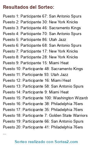 - Puesto 1: Participante 67: San Antonio Spurs