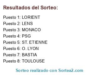 Lista de participantes: LORIENT, TOULOUSE, BASTIA, LENS, MONACO, O. LYON, ST. ETIENNE, PSG.
