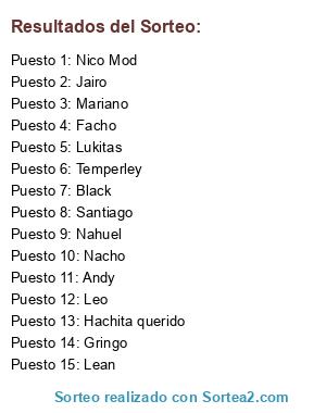 Lista de participantes: Jairo, Lukitas, Nacho, Facha, Ari, Marian, Locke, Emi.