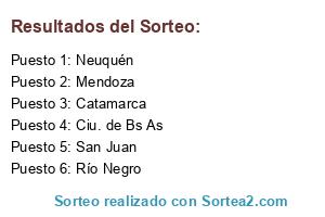 Lista de participantes: Ciu. de Bs As, Catamarca, San Juan, Mendoza, Río Negro, Neuquén.
