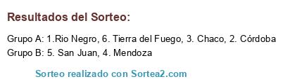 Lista de participantes: 1.Rio Negro, 2. Córdoba, 3. Chaco, 4. Mendoza, 5. San Juan, 6. Tierra del Fuego.