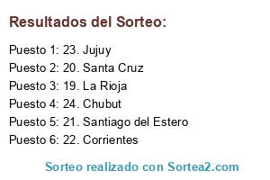 Lista de participantes: 19. La Rioja, 20. Santa Cruz, 21. Santiago del Estero, 22. Corrientes, 23. Jujuy, 24. Chubut.