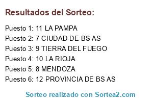 Lista de participantes: 7 CIUDAD DE BS AS, 8 MENDOZA, 9 TIERRA DEL FUEGO, 10 LA RIOJA, 11 LA PAMPA, 12 PROVINCIA DE BS AS.