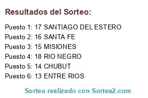 Lista de participantes: 13 ENTRE RIOS, 14 CHUBUT, 15 MISIONES, 16 SANTA FE, 17 SANTIAGO DEL ESTERO, 18 RIO NEGRO.