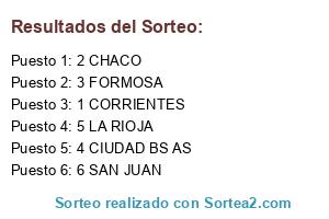 Lista de participantes: 1 CORRIENTES, 2 CHACO, 3 FORMOSA, 4 CIUDAD BS AS, 5 LA RIOJA, 6 SAN JUAN.