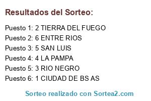 Lista de participantes: 1 CIUDAD DE BS AS, 2 TIERRA DEL FUEGO, 3 RIO NEGRO, 4 LA PAMPA, 5 SAN LUIS, 6 ENTRE RIOS.