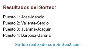 Lista de participantes: Barbosa-Barona, Juanma-Joaquín, Jose-Manolo, Valiente-Sergio.