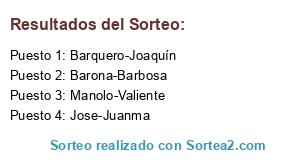 Lista de participantes: Jose-Juanma, Barquero-Joaquín, Barona-Barbosa, Manolo-Valiente.