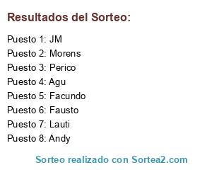 Lista de participantes: Morens, Perico, Andy, Fausto, Agu, Lauti, JM, Facundo.