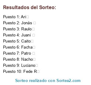 Resultados del sorteo: