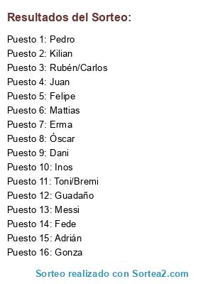 Resultados del sorteo: