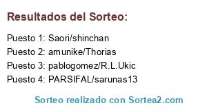 Lista de participantes: pablogomez/R.L.Ukic, PARSIFAL/sarunas13, amunike/Thorias, Saori/shinchan.