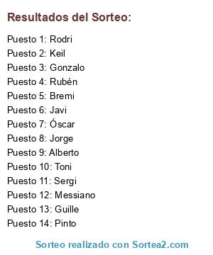 Lista de participantes: Óscar, Toni, Sergi, Guille, Rodri, Bremi, Keil, Messiano, Javi, Gonzalo, Jorge, Rubén, Pinto, Alberto.