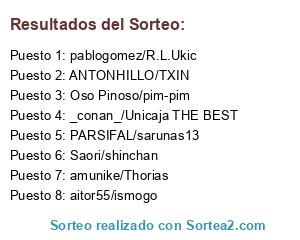 Lista de participantes: ANTONHILLO/TXIN, Saori/shinchan, _conan_/Unicaja THE BEST, Oso Pinoso/pim-pim, amunike/Thorias, aitor55/ismogo, pablogomez/R.L.Ukic, PARSIFAL/sarunas13.