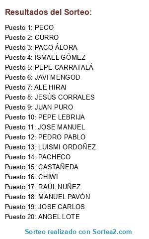 Lista de participantes: ISMAEL GÓMEZ, CASTAÑEDA, PECO, PACHECO, JESÚS CORRALES, JOSE CARLOS, PACO ÁLORA, JUAN PURO, JOSE MANUEL, CHIWI, MANUEL PAVÓN, PEPE LEBRIJA, JAVI MENGOD, ALE HIRAI, CURRO, PEPE CARRATALÁ, ANGEL LOTE, PEDRO PABLO, LUISMI ORDOÑEZ, RAÚL NUÑEZ.