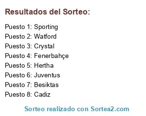 Lista de participantes: Fenerbahçe, Sporting, Watford, Crystal, Besiktas, Hertha, Juventus, Cadiz.