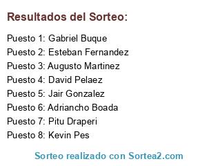 Lista de participantes: Jair Gonzalez, Esteban Fernandez, Augusto Martinez, Pitu Draperi, Gabriel Buque, Adriancho Boada, David Pelaez, Kevin Pes.