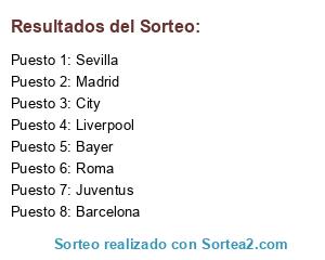 Lista de participantes: Madrid, Roma, Barcelona, Bayer, City, Liverpool, Sevilla, Juventus.