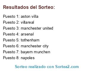 Lista de participantes: manchester city, villareal, napoles, tothenham, manchester united, arsenal, bayern munchen, aston villa.