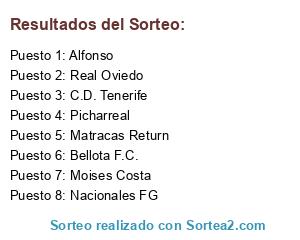 Lista de participantes: Alfonso, Bellota F.C., C.D. Tenerife, Picharreal, Real Oviedo, Nacionales FG, Matracas Return, Moises Costa.