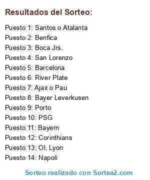 Lista de participantes: Barcelona, Atalanta, River, San Lorenzo, Napoli, Oporto, Leverkusen, Bayern.