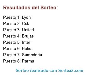Lista de participantes: Parma, United, Brujas, Inter, Csk, Lyon, Betis, Sampdoria.