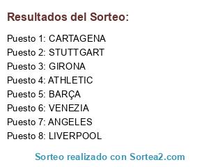 Lista de participantes: VENEZIA, BARÇA, CARTAGENA, GIRONA, ANGELES, ATHLETIC, LIVERPOOL, STUTTGART.