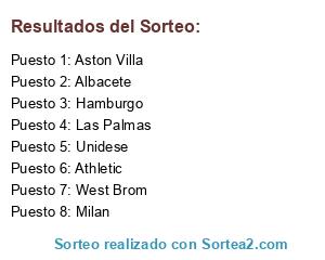 Lista de participantes: Aston Villa, Athletic, West Brom, Albacete, Hamburgo, Unidese, Las Palmas, Milan.