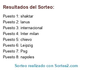 Lista de participantes: Psg, Inter milan, Leipzig, lanus, napoles, shaktar, chievo, internacional.