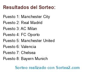 Lista de participantes: FC Oporto, Manchester United, Bayern Munich, Real Madrid, Manchester City, Valencia, Chelsea, AC Milan.