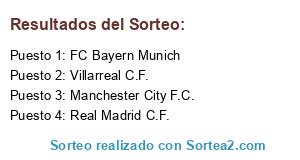 Lista de participantes: Manchester City F.C., Real Madrid C.F., Villarreal C.F., FC Bayern Munich.