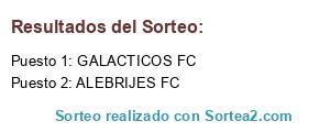 Lista de participantes: ALEBRIJES FC, GALACTICOS FC.