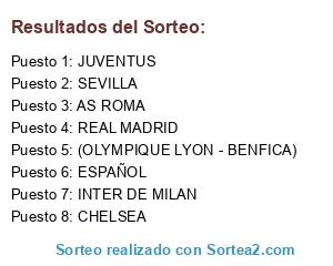 Lista de participantes: CHELSEA, BAYERN, ATLETICO MADRID, JUVENTUS, MANCHESTER, AC MILAN, ESPAÑOL, LIVERPOOL.