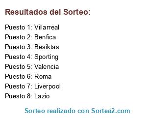 Lista de participantes: Besiktas, Benfica, Sporting, Roma, Lazio, Liverpool, Villarreal, Valencia.