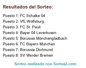Lista de participantes: Bayer 04 Leverkusen, Borussia Dortmund, Borussia Mönchengladbach, FC Bayern München, FC Schalke 04, FC St. Pauli, SV Werder Bremen, VfL Wolfsburg.
