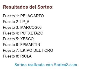 Lista de participantes: LP_6, XESCO, MARCOS06, PELAGARTO, FPMARTIN, PUTXETAZO, EKIPO DEL FORO, RICLA.