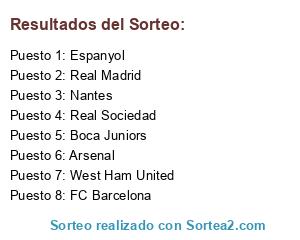 Lista de participantes: Nantes, Real Madrid, Espanyol, Arsenal, Real Sociedad, FC Barcelona, West Ham United, Boca Juniors.