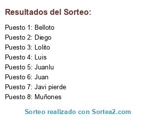 Lista de participantes: Juanlu, Muñones, Javi pierde, Belloto, Luis, Diego, Juan, Lolito.