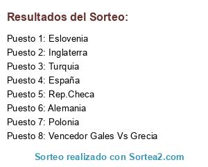 Lista de participantes: España, Alemania, Eslovenia, Rep.Checa, Inglaterra, Polonia, Turquia, Vencedor Gales Vs Grecia.