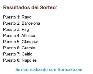 Lista de participantes: Celtic, Gremio, Psg, Glasgow, Rayo, Barcelona, Atletico, Napoles.