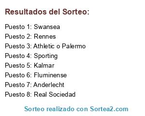 Lista de participantes: Fluminense, Sporting, Swansea, Real Sociedad, Anderlecht, Rennes, Athletic o Palermo, Kalmar.
