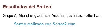 Lista de participantes: Monchengladbach, Tottenham, Juventus, Arsenal.
