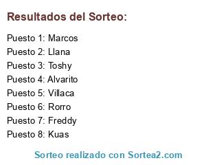 Lista de participantes: Rorro, Toshy, Llana, Marcos, Kuas, Alvarito, Villaca, Freddy.