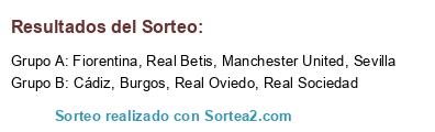 Lista de participantes: Real Sociedad, Sevilla, Manchester United, Cádiz, Fiorentina, Real Oviedo, Real Betis, Burgos.