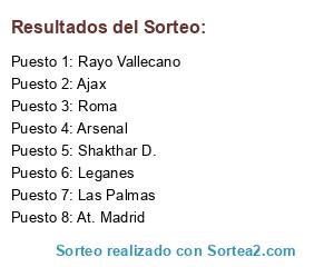 Lista de participantes: Rayo Vallecano, Roma, Ajax, Arsenal, At. Madrid, Shakthar D., Leganes, Las Palmas.