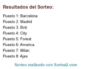 Lista de participantes: Milan, America, City, Madrid, Barcelona, Bvb, Forest, Ajax.