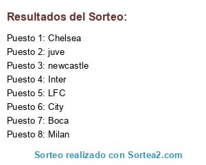 Lista de participantes: newcastle, Boca, Inter, juve, City, Chelsea, Milan, LFC.